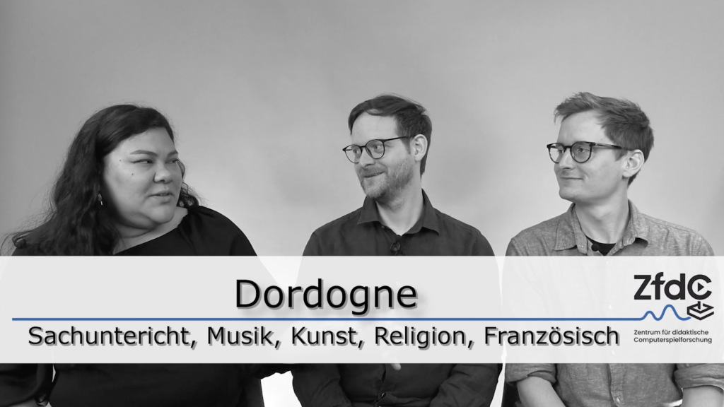 Für den Deutschunterricht eignet sich das knapp drei Stunden umfassende Dordogne vor allem wegen der im Spiel erzählten Geschichte. Die Spielenden erleben aus der Perspektive von Mimi ihr Leben zu zwei unterschiedlichen Zeitpunkten. So schlüpfen sie einerseits phasenweise in die Rolle der erwachsenen Mimi, die auf der Suche nach der Erinnerungskiste ihrer Großmutter das Haus auf den Kopf stellt; dazu erleben sie in Flashbackerzählungen den Sommer der zwölfjährigen Mimi in der Dordogne mit. Während die Erlebnisse der jungen Frau die Rahmenhandlung darstellen, nehmen ihre Erlebnisse im Kindesalter deutlich mehr Raum im Spiel ein, sodass vor allem die Handlungszusammenhänge in der Geschichte der kindlichen Protagonistin im Mittelpunkt stehen. Diese narrative Doppelstruktur bietet sich u.a. für den Ausbau des kindlichen Handlungsverstehens in der Primarstufe an. Zum einen können vor allem Mimis Erlebnisse zur Handlungsidentifikation rekapituliert und erste Zusammenhänge hergestellt werden; zum anderen ist es zur weiterführenden Handlungsanalyse möglich, Informationen aus dem kindlichen und erwachsenen Erzählstrang miteinander zu kombinieren, um das Rätsel um die fehlenden Erinnerungen Mimis zu lösen. Das Spiel bietet hierzu vielfältige Reflexionsanlässe, da sich die literarischen Handlungsräume unabhängig von der Zeitlinie ähneln, sich einzelne Elemente jedoch unterscheiden oder aber aufeinander verweisen: So findet sich beispielsweise Mimis Lieblingstasse in beiden Erzählsträngen in Noras Küche, wenngleich die erwachsene Mimi ihren Tee aus einer deutlich abgenutzteren Version trinkt; der Bonsaibaum im Badezimmer ist während Mimis Kindheitsabenteuern – ähnlich wie die Küchenkräuter im Garten – nur wenige Zentimeter hoch, während sich die erwachsene Mimi in einem überwucherten Garten wiederfindet und einem recht groß gewachsenen Bonsai gegenübersieht. Eben jene Elemente lassen sich nutzen, um handlungslogische Verbindungslinien zu ziehen und eine Orientierung hinsichtlich der literarischen Kategorien Zeit und Raum zu ermöglichen.