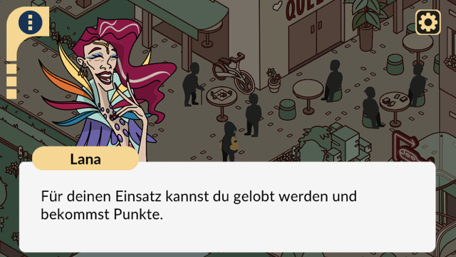 Herzlich willkommen in Ilios, der idealen Stadt der Zukunft im Als Neuankömmlinge erkunden Spielende die Stadt, schließen neue Bekanntschaften und lernen unterschiedliche politische Standpunkte der Bürger*innen von Ilios kennen. Dabei erfahren sie bald: Das wichtigste Instrument der Bürger*innen ist der „Tolerance Score“, der nach demokratischer Abstimmung eingeführt wurde und aktuell in der Pilotphase steckt. Dahinter verbirgt sich ein Punktesystem, das ihr Verhalten bewertet – wer besonders gemeinwohlorientierte Dinge tut, kann von anderen gelobt werden und so Toleranzpunkte sammeln, die für Gutscheine und kleine Vorteile eingetauscht werden können. Doch eines Tages wird eine zweite Phase des Experiments eingeführt, über die die Bürger*innen nicht abgestimmt haben. Von nun an ist es auch möglich, diejenigen zu melden, die sich nicht solidarisch verhalten, sodass sie dafür Punkte verlieren. Auf einmal dürfen Bürger*innen, die nicht genügend Punkte haben, die Brücke in einen anderen Teil der Stadt nicht mehr überqueren. Unmut macht sich breit, und schnell wächst der Widerstand. Welche Meinung vertreten die Spielenden – und wollen sie eine gemeinsame Lösung finden, die alle mit einbezieht? |