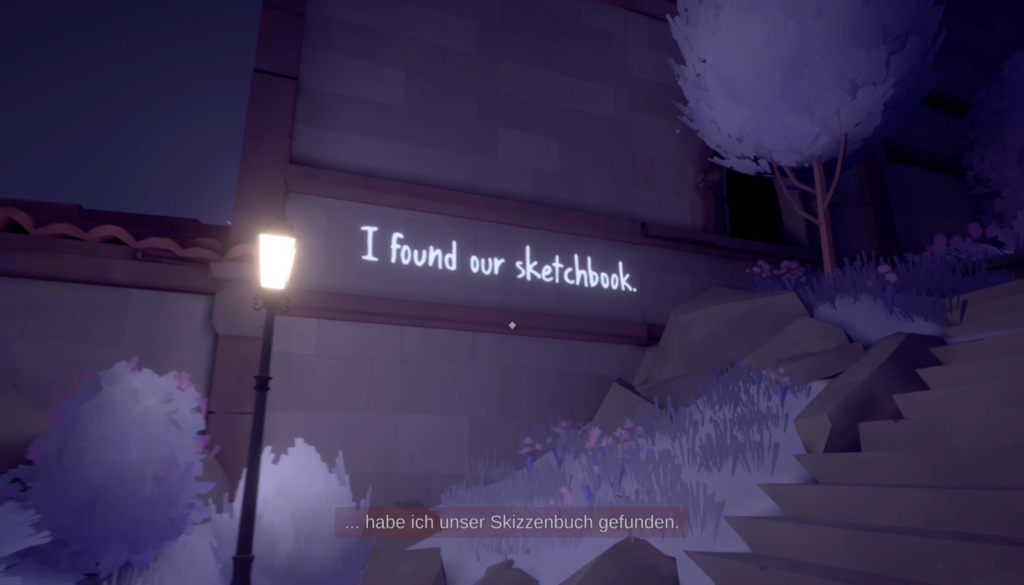 Für den Literaturunterricht bietet die im Spiel erzählte Liebesgeschichte die Möglichkeit, den Verbund von Narration, visueller Gestaltung des Raums und Interaktivität zu analysieren. Der Zusammenhang zwischen Raum und Erzählung kann beispielsweise analysiert werden, indem einzelne Ereignisse und die ihnen zeitgleich gegenüberstehenden Veränderungen des literarischen Raums näher beleuchtet werden. Dazu erscheint die Verwendung von Impulsfragen sinnvoll: Was könnte es im Kontext der Narration bedeuten, wenn sich eine im Zentrum der Welt kaum wahrnehmbare Lücke zwischen zwei Häusern plötzlich als scheinbar unüberwindbare Tiefe herausstellt, wenn sie von einem anderen Standort aus betrachtet wird? Und wie kann dieser Graben überwunden werden, um die Handlung voranzutreiben? Gerade die Bedeutung von Gegenständen mit symbolischem Charakter werden in diesem Zusammenhang bedeutsam, da manche Gegenstände verschiedene situationsbezogene Funktionen haben: So kann ein Schlüssel beispielsweise zum einen als Türöffner fungieren, zum anderen aber auch als Brücke zur Überwindung von Gräben genutzt werden. Vor dem Hintergrund der Symboldeutung bieten sich Reflexionsphasen an, um diese Gegenstände zentral zu stellen und ihre Bedeutung für den Spielverlauf zu verhandeln. Der Schlüssel kommt z. B. als Objekt im Laufe der Geschichte mehrfach und in verschiedenen Funktionen vor. Wie diese Gegebenheiten hinsichtlich unterschiedlicher Merkmale gedeutet werden können, kann mit den Schüler*innen gemeinsam diskutiert werden: In welchen Situationen und in welcher Funktion kommt der Schlüssel vor? Welche Bedeutung trägt er somit bzw. wofür steht er? Auch die zunächst scheinbar ausschließlich beobachtende Perspektive, aus der die Spielenden die Geschichte rezipieren, kann mittels kreativer Schreibaufgaben reflektiert werden: Welche Rolle spielst du in der Geschichte und wie fühlst du dich damit? Was ist dein Ziel? Mit diesen und weiteren Fragen können sich die Lernenden auseinandersetzen, um über die Vernetzung der verschiedenen Elemente ein tieferes Verständnis der Geschichte zu entwickeln.